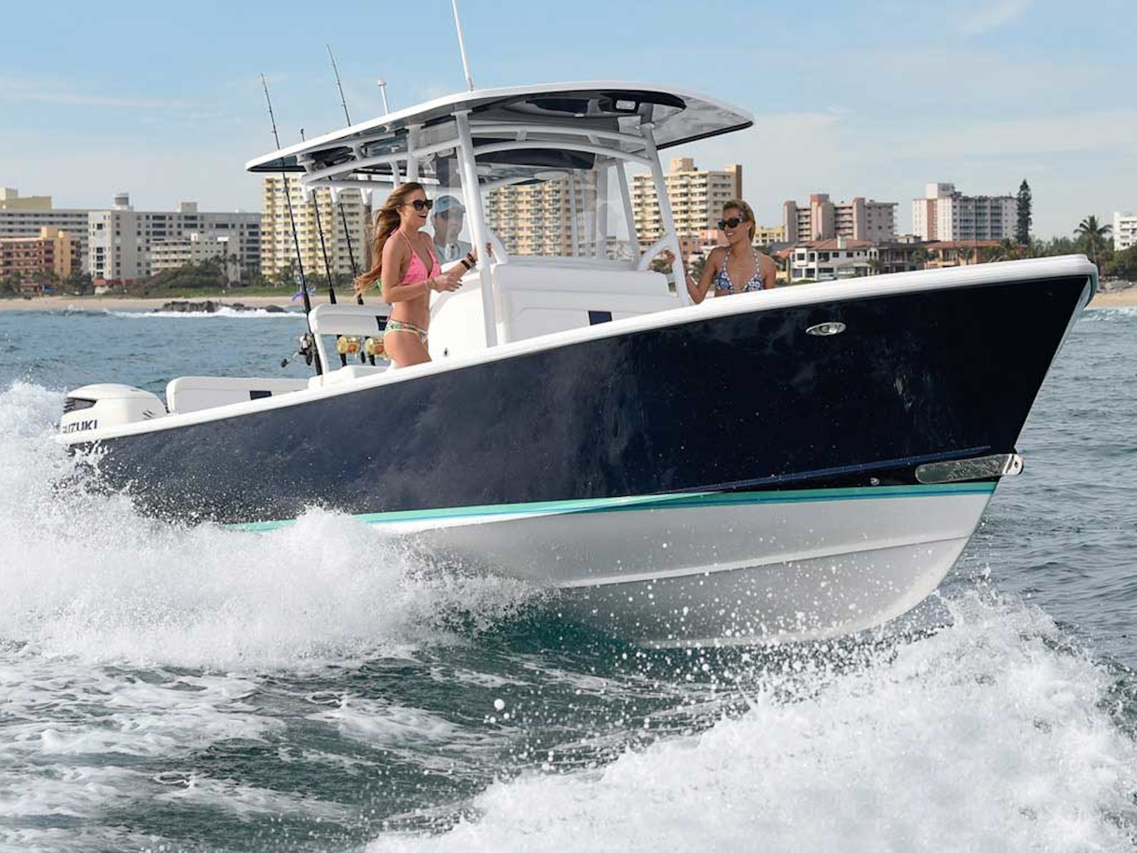 The 27 continues to improve since she was introduced in 2007. Her forward seat and forward in-deck storage areas are 50% larger than before. The storage area and pump room are now finished with Awl-Grip paint. Refined electrical systems are built by the best in the industry, with continuously labeled wires and Deutsch connectors. The pipe work is punched up, with wrap around backrests and schedule 80 top legs. Starting with the 2014 model year, our second generation interior made the 27 better. Our new console, mounted further aft, incorporated a storage bin, added a cooler seat, and improved the ergonomic layout. The aft bulkhead was raised, which allowed for an aft live well, improved rear seat, and a pleasing transom shape. For 2022, we introduced the "B" version, with an even larger live well, 9" longer cockpit and Armstrong bracket.