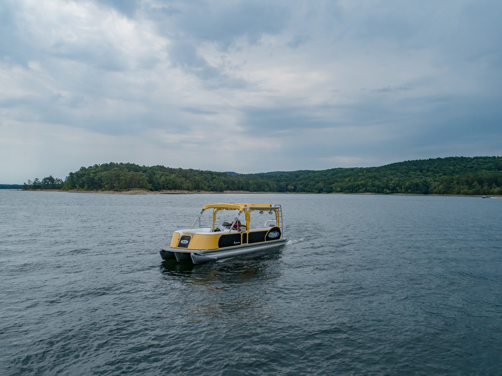 Bid your worries good-bye when you cruise the lakes on this fine craft. Hit the water and head to your own personal oasis while catching some rays, or pop up the bimini and have a relaxing float in the shade. After a cool swim and and easy entrance up the extra-long, heavy-duty stern boarding ladder, kick back and enjoy some tropics close to home.