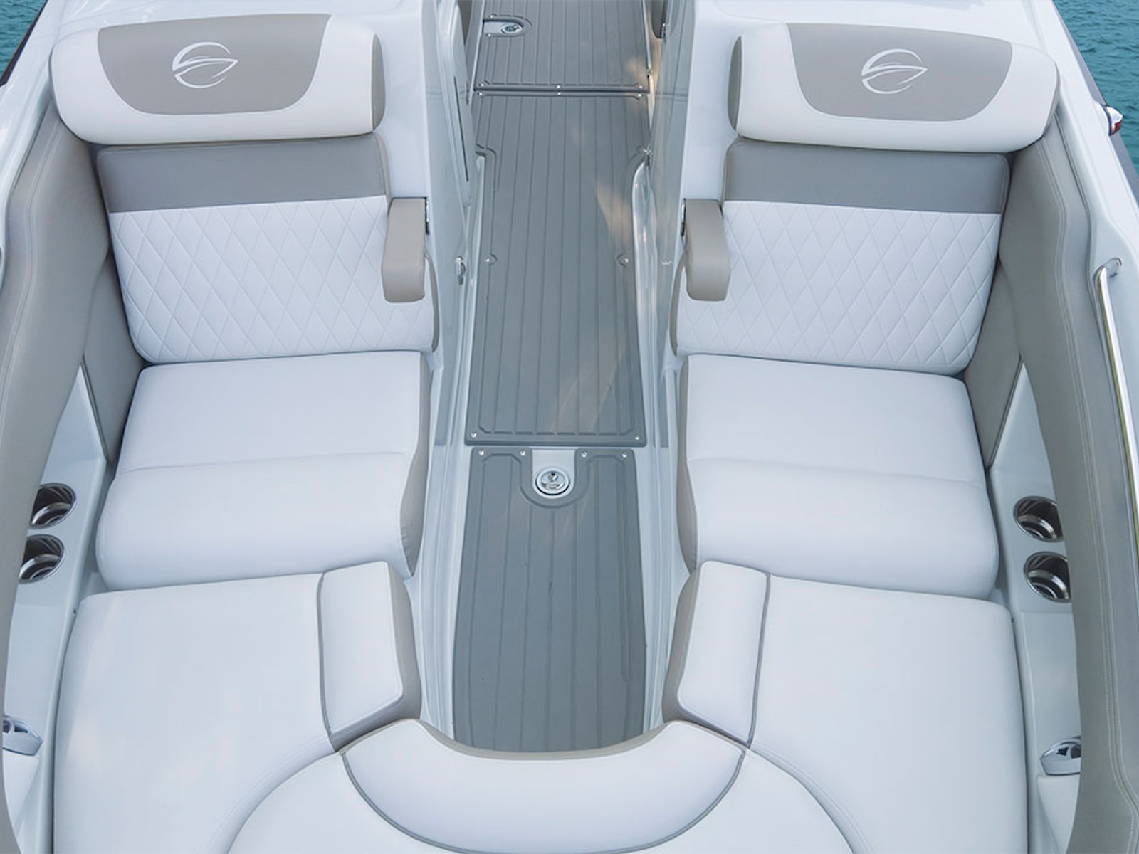 The E280 XS is an outboard crossover that’s easy to tow, easy to drive, and easy to love. Its standard deluxe aluminum wakeboard tower adds to the sporty feel. Up front, the flush-fit bow walk-through door helps extend your boating season by blocking cooler breezes and leads to a roomy, hot-tub-style bow seating area with large under-seat storage to keep the boat safe and clutter-free.