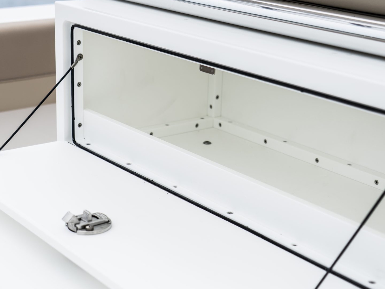 Under Gunwale Rod Storage Racks | Transom Jump Seat Storage Compartments | Helm Seat Storage Compartments