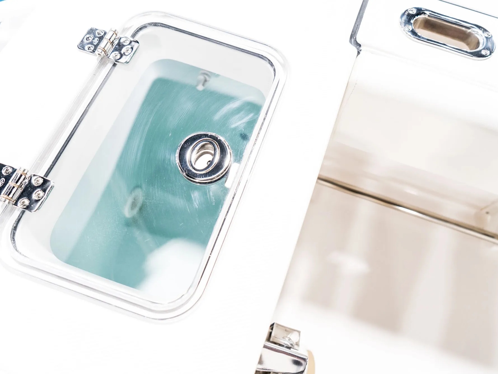 High Density Composite Transom | Folding Recessed Telescoping Transom Ladder | 20 gal Transom Baitwell