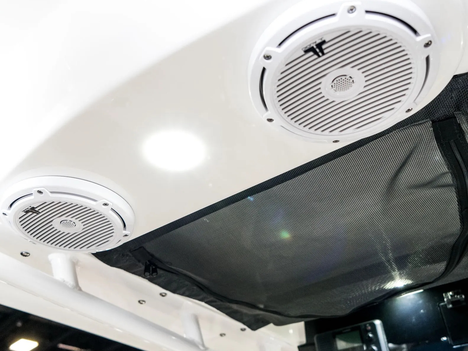 • Fiberglass Hardtop, LED Spreader Lights (3), PFD Storage Bag and E-Box