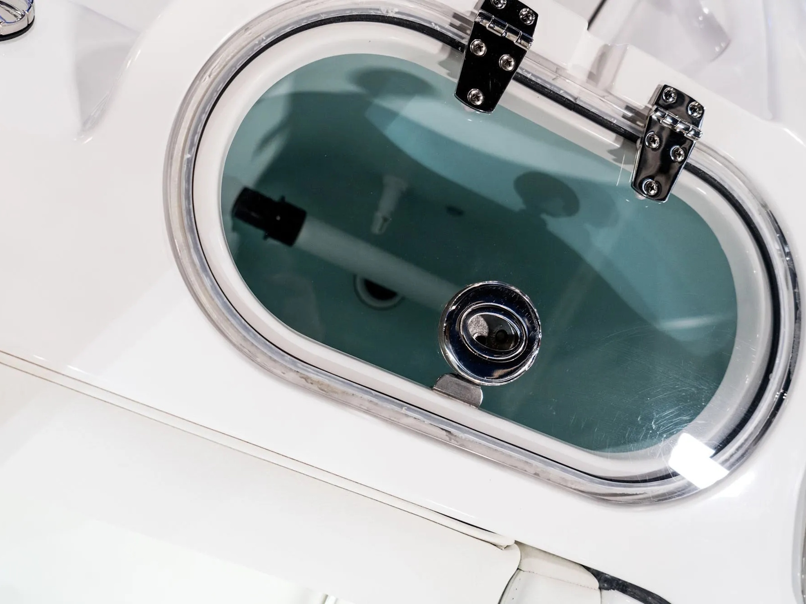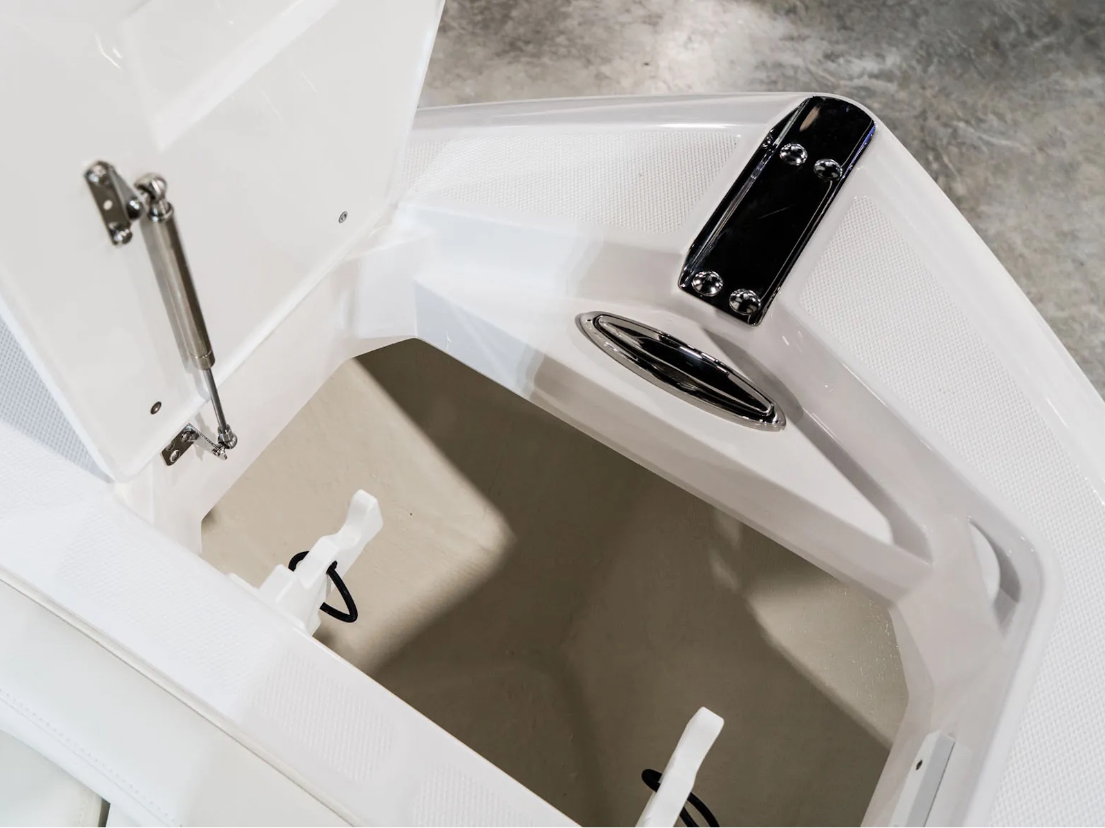 Head – Secured with Cockpit Table Storage, Dive Tank Storage, Bulk Storage, Lighting and Port Hole | Insulated Bow Storage/Fishbox w/ Overboard Drain