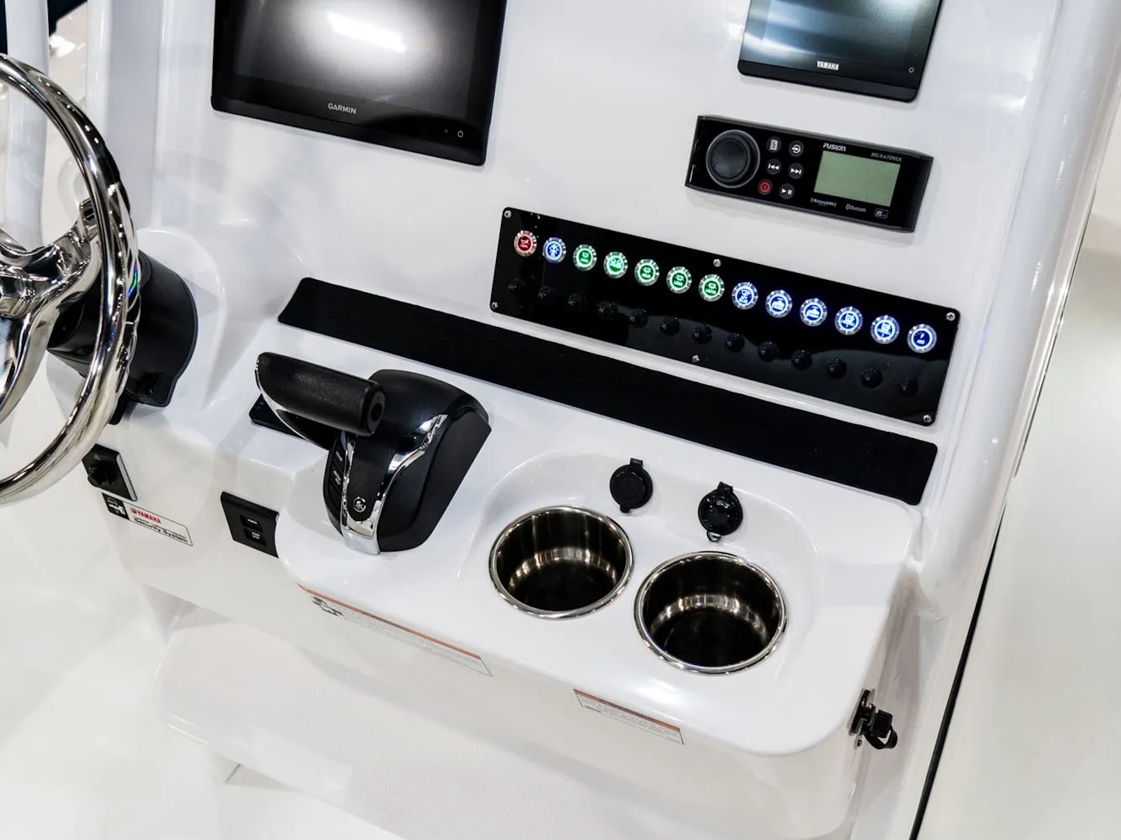 Packaged with Yamaha Four Stroke power up to 300hp, this boat is sure to impress in the performance category. It is the first in a fresh new line of offshore center console models designed to be the perfect blend between fishing and family cruising.