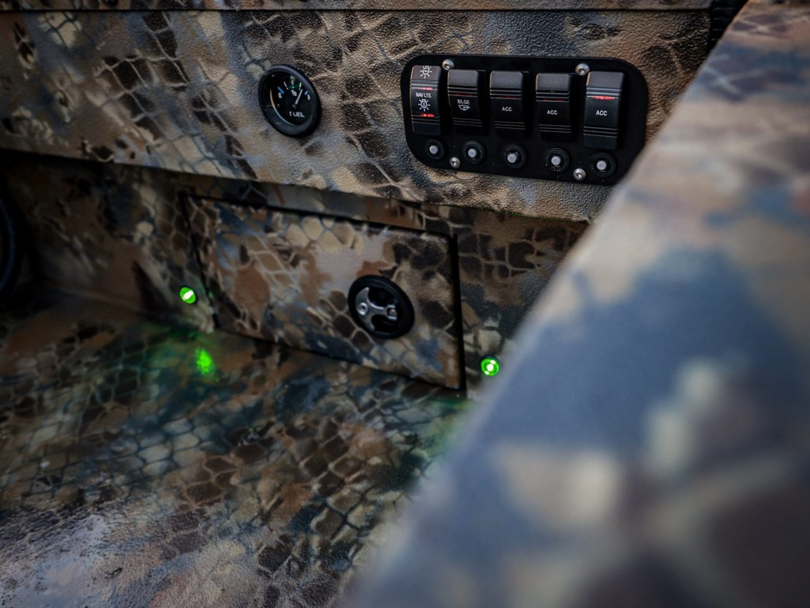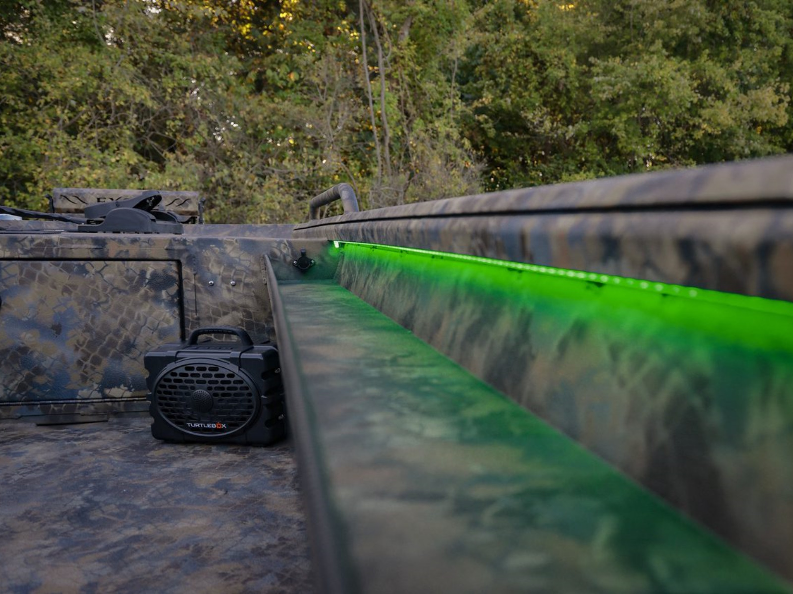 - Advanced RGBW Light Package – 3/4” LED White Compartment Lights (Up to Six QTY depending on options & model), -1” RGBW LED Floor Lights (4 QTY Standard), -2 Interior RGBW LED Strip Lights , -RGBW Mounted Controller , -RGBW Underwater Transom Lights