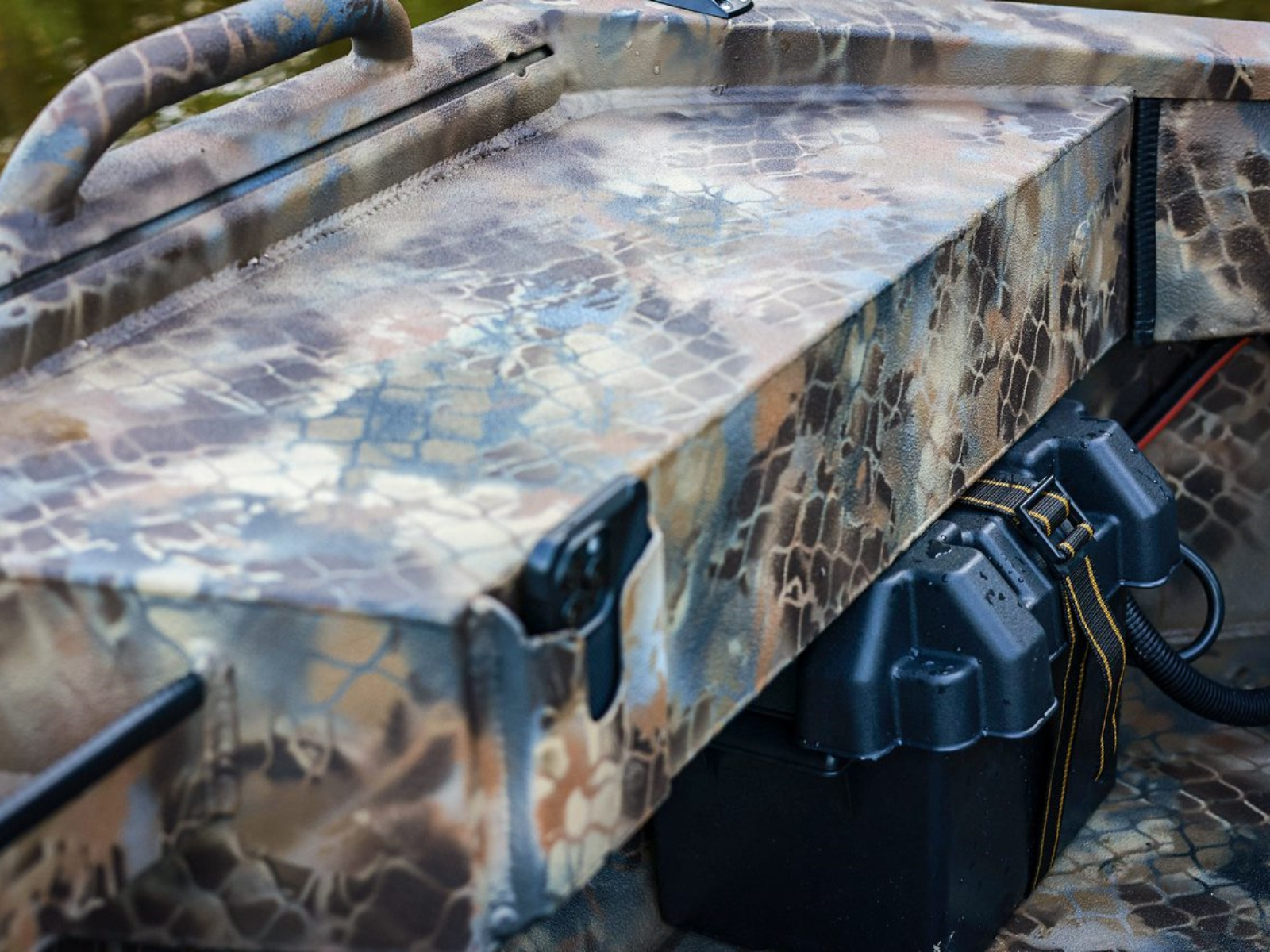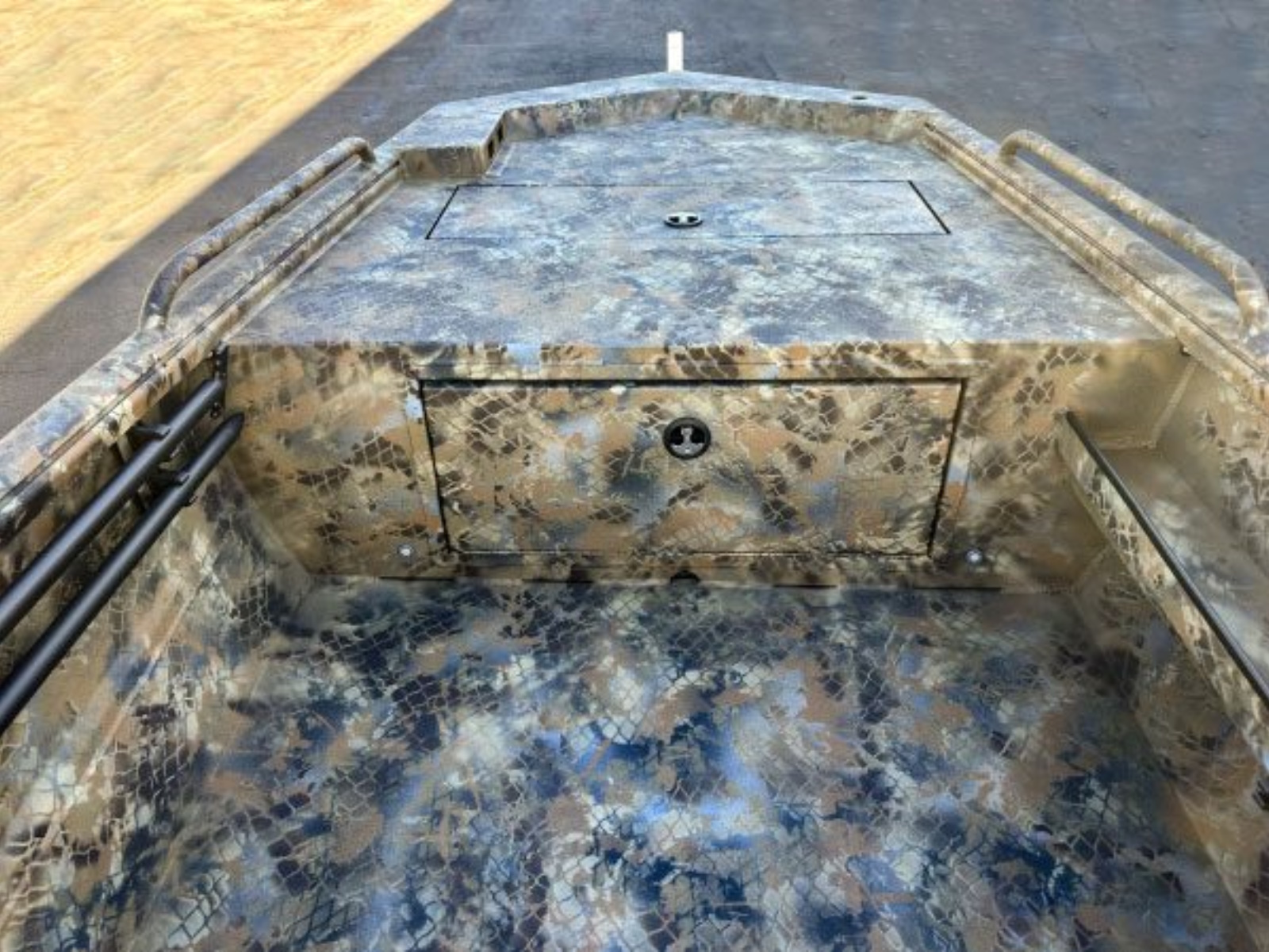The Excel Pro Hull is a culmination of many years of duck boat ingenuity and this step deck is indeed designed to be what duck hunters want – light, tough and quick. The Pro Hull open hull design with a reinforced floor will take you into those redfish and duck hunting extreme shallow water areas with ease. It runs shallower, is easy to turn with its triple taper chine and flat bottom, and has exceptional high-end speeds. Of course, there are many options to choose from with this F4 Pro Hull, but this boat comes standard with a full floor, low or high front deck, front grab rail, stand-up bar, interior lights, bilge, running lights, step deck, and some serious get-up-and-go attitude.