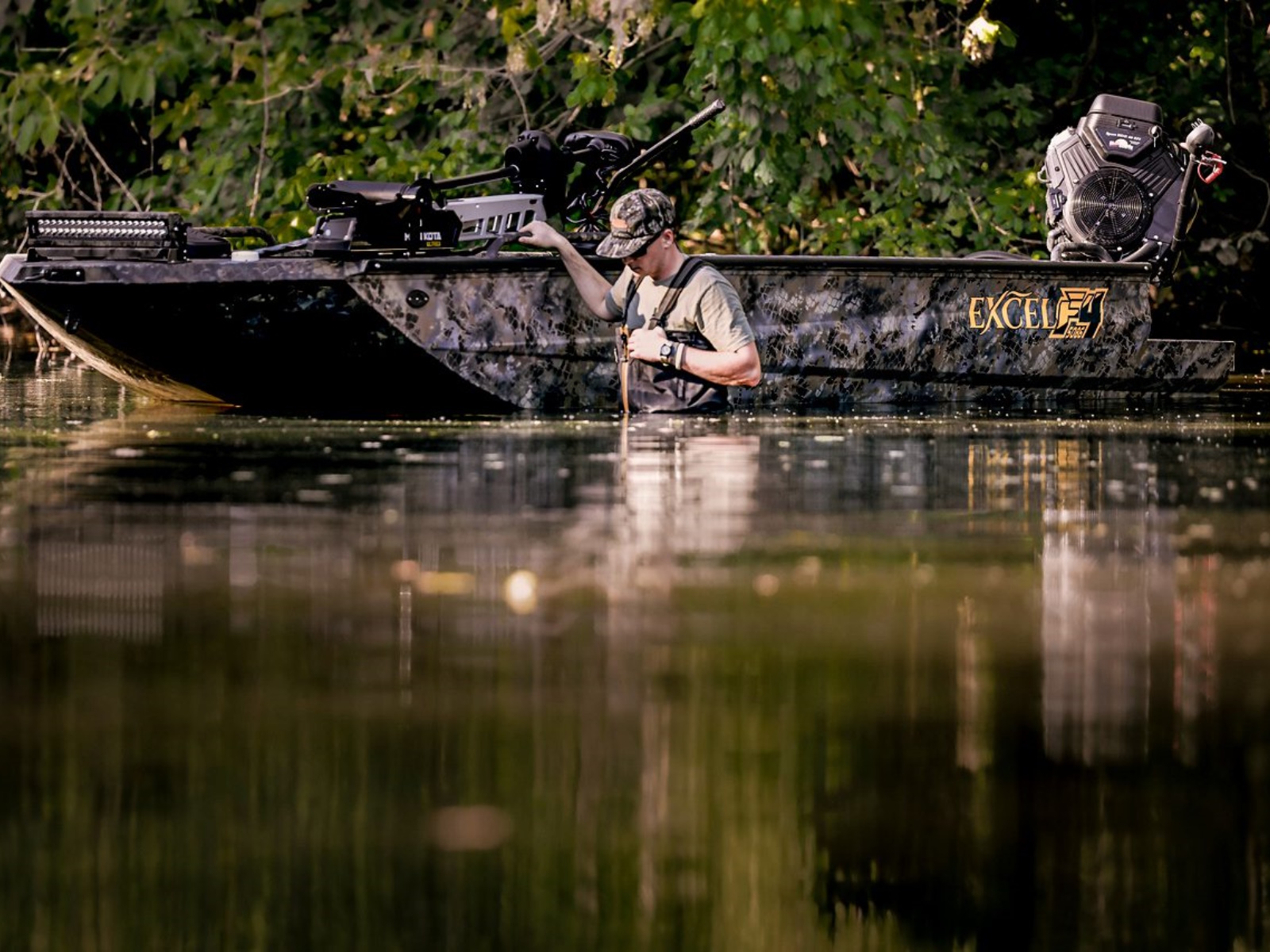 Over 20 years ago, Excel CEO Glenn Foreman introduced the first step deck (the MR18 Duck Boat) to the shallow water duck boat industry. Today, most duck boat lines feature this step deck design.