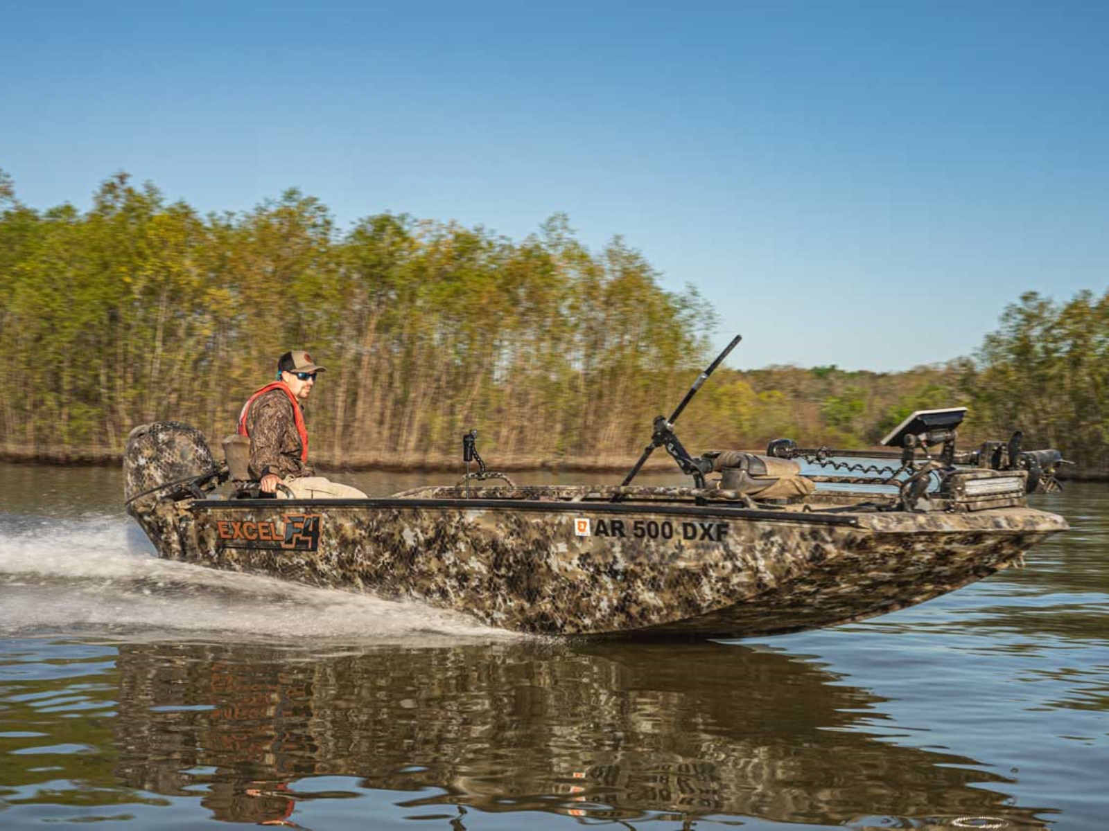 Tank-like bracing throughout doesn’t make this boat a lightweight, but it will outlast any other boat made. The step deck (Excel was the 1st to offer this feature) takes the leg-work out of getting in and out of your boat and our exclusive OPTIFADE™ camo will disappear in any timber hole or marsh.