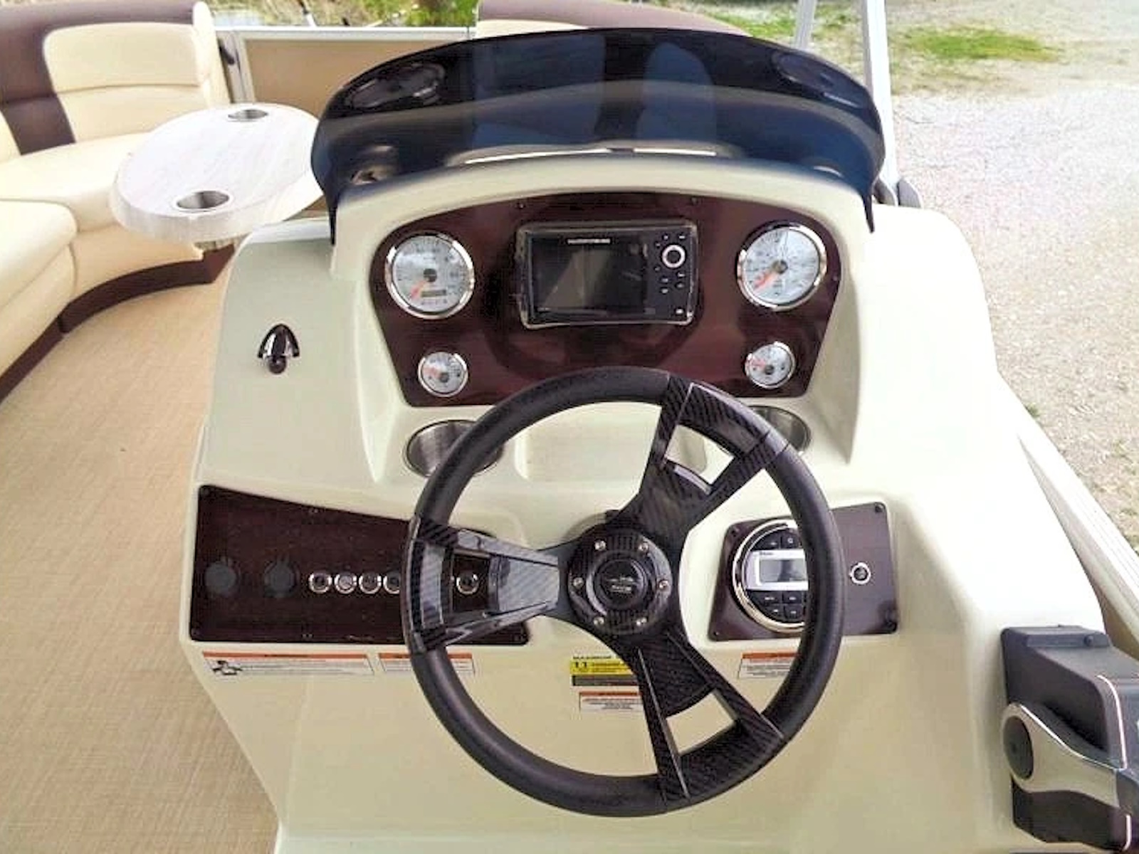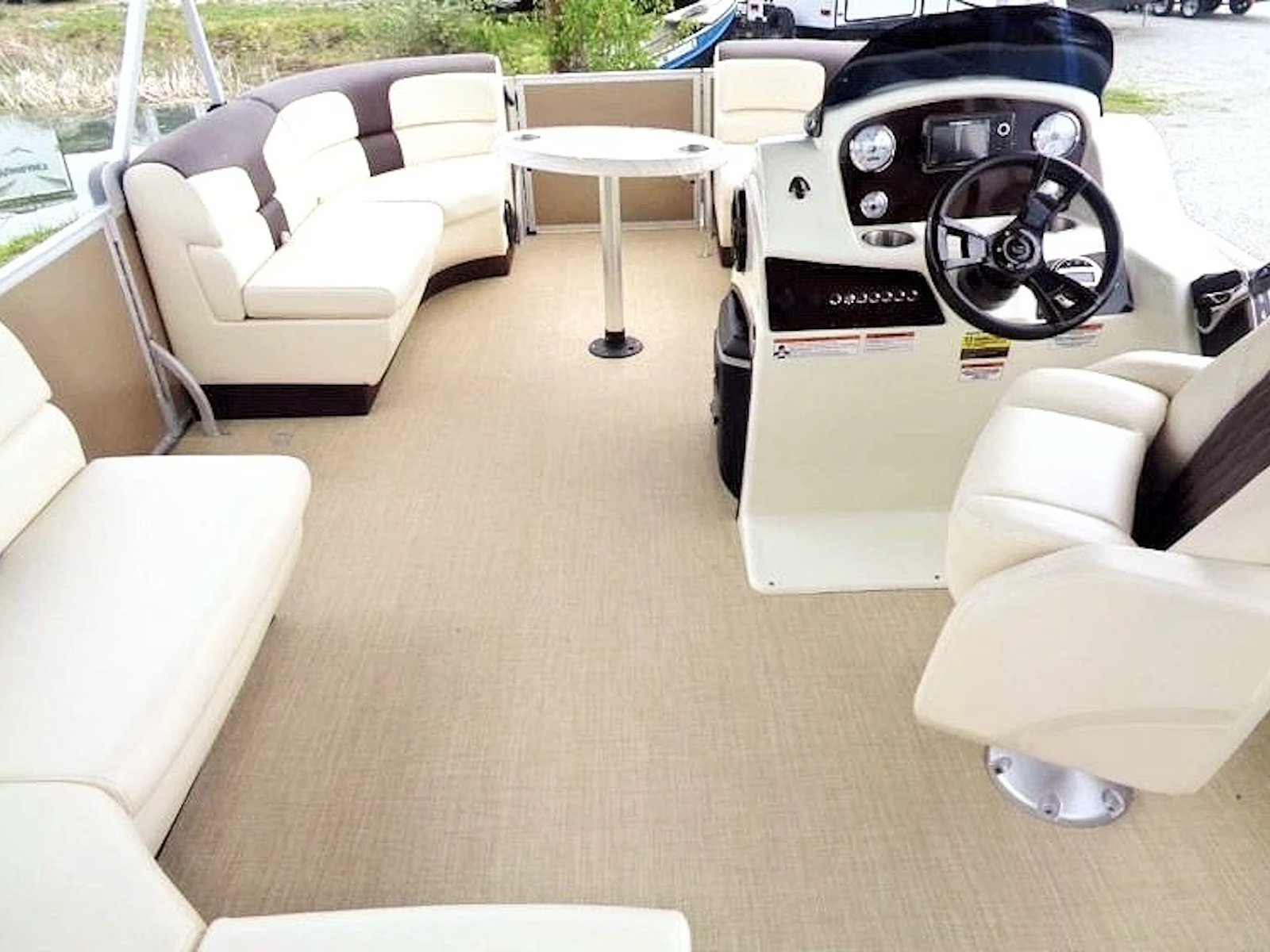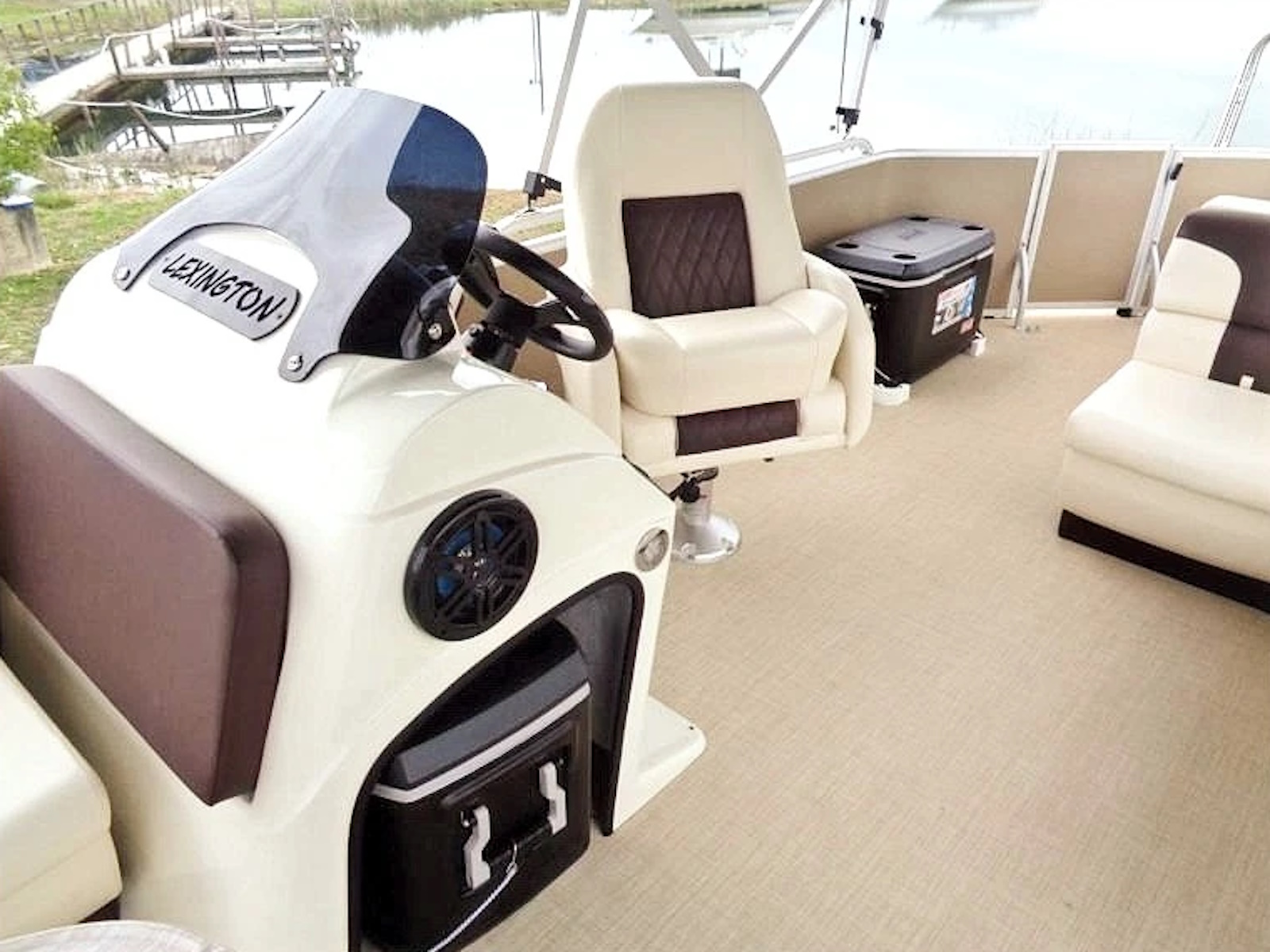 A Lexington 521 Pontoon Boat is the perfect choice for the family looking for a perfect medium of value and length. Sitting on (3)x 28.5″ diameter High Performance tri-toons, this wonderful vessel also boats standard features like sea weave marine flooring, premium upholstery, stereo, courtesy and so much more! Friends and family will love spending years on the lake in this gorgeous Lexington 521 Pontoon Boat. Keep scrolling for more photos, features, and specifications!