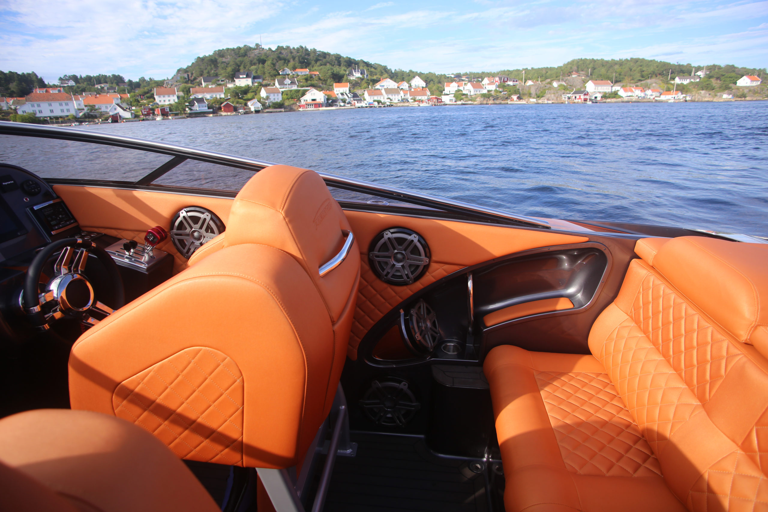 The 337-R have been used for pleasureboating as well as poker-runs and offshore races. The tough built construction, heavy duty race-style rigging, and the same level of detail, luxury and craftsmanship that is expected from Predator Luxury Performance Boats. What you get here is a 35 feet v-bottom that outperforms even bigger boats than itself both on the racecourse and in the exceptional line of details.