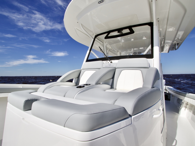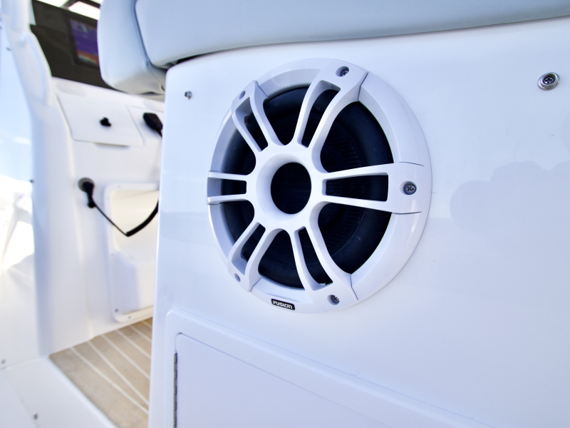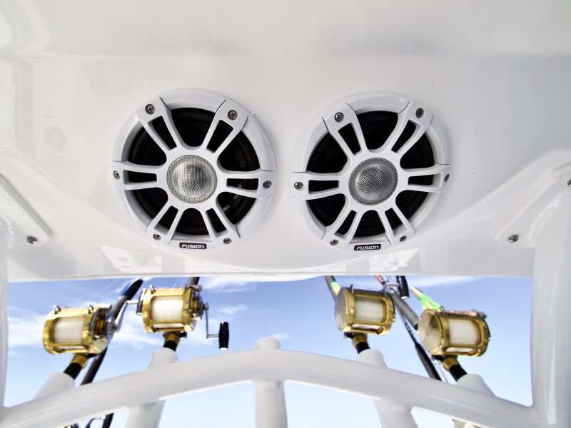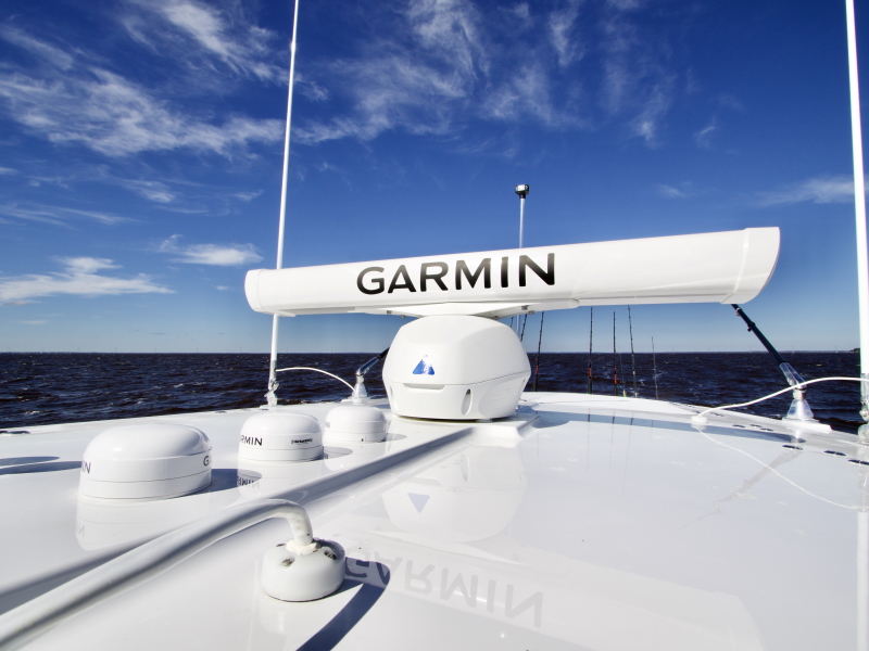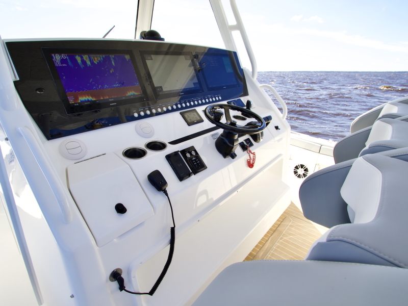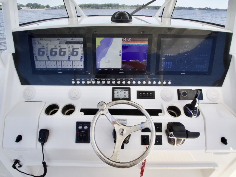 - Factory-Installed Garmin® Offshore 37 Package: Dual 22’’ GPSMAP® 8622 Multi-Touch Widescreen Chartplotter/Sonar Displays, VHF 215 AIS Radio with 8’ Antenna, GMR™ 424 xHD2 4kW Open-Array Radar, Airmar® B275LHW with Wide Beam 1kW CHIRP Transducer, and Yamaha EX Autopilot, Plus Black Flushmount Electronics Face and Remote Mic