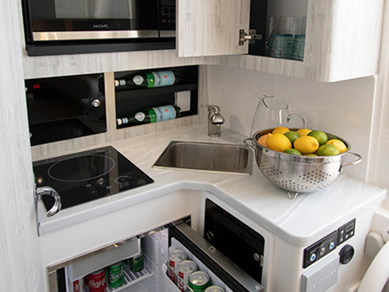 - Galley with Refrigerator, Microwave, Sink, and Cabinet Storage