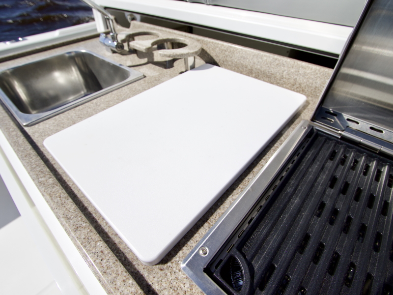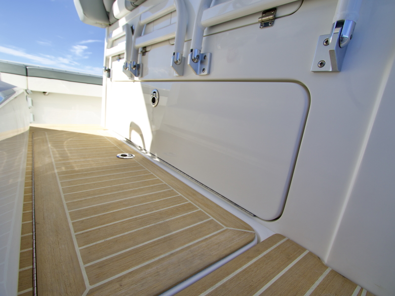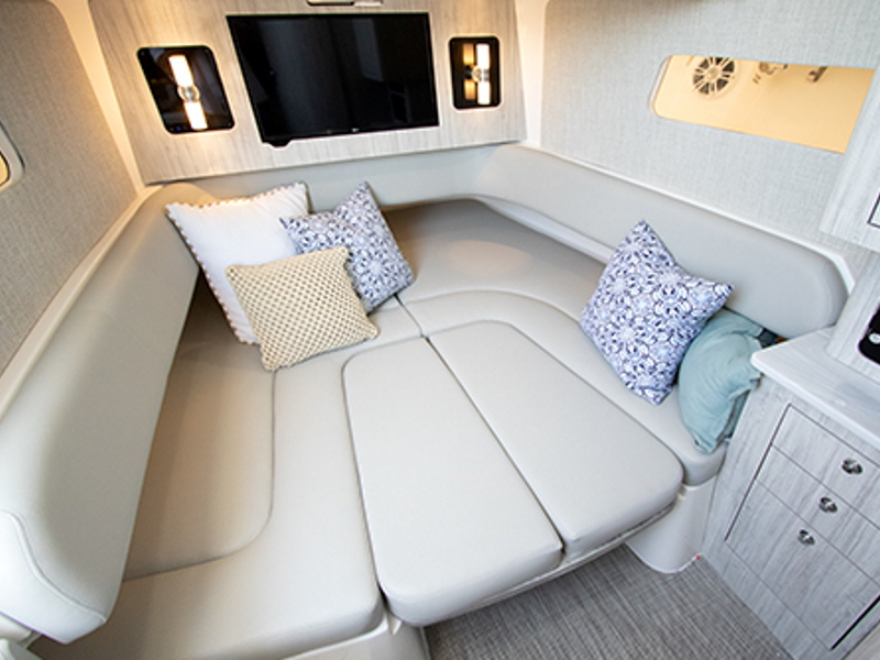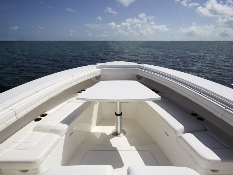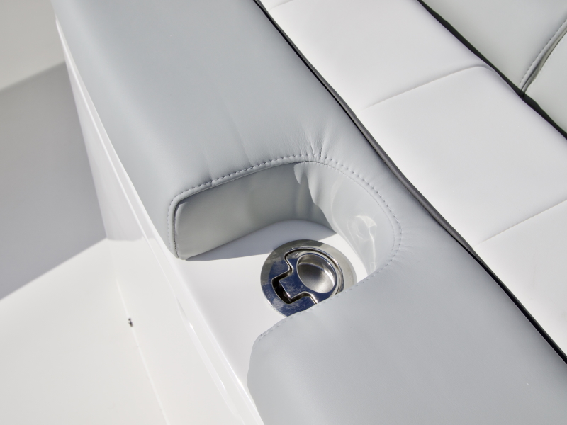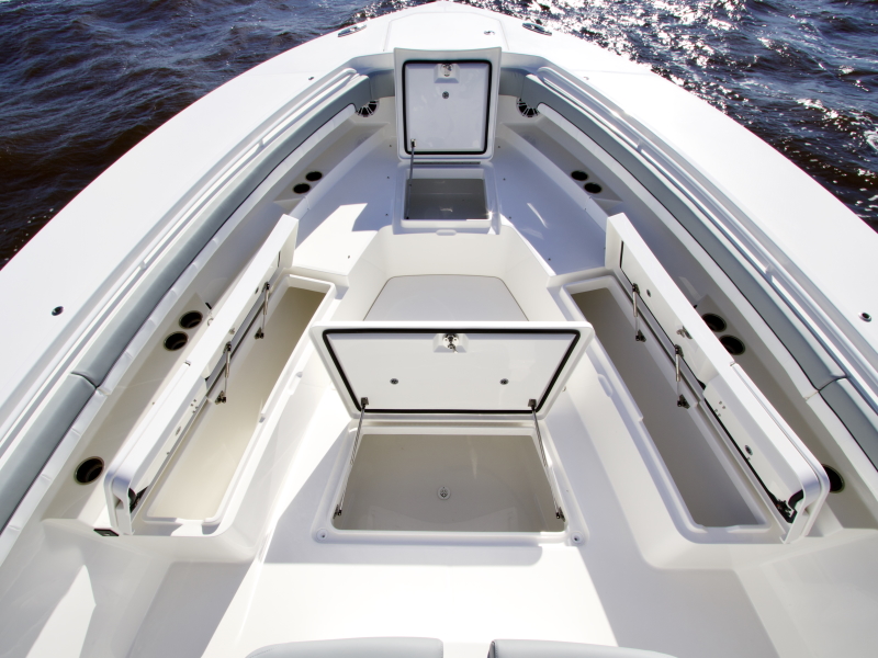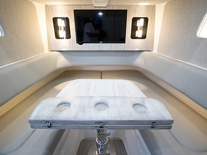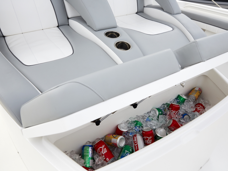 - Fully Accessible, Illuminated Pump Room Beneath Aft Bench Seat (Fuel Tanks, Optional Seakeeper® 5, & Other Systems Access, and Extra Storage)