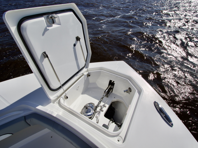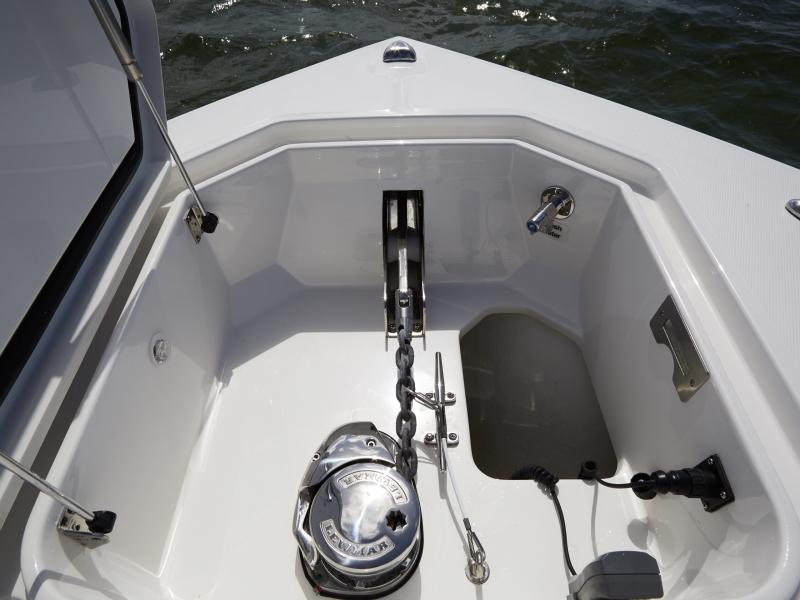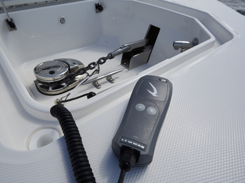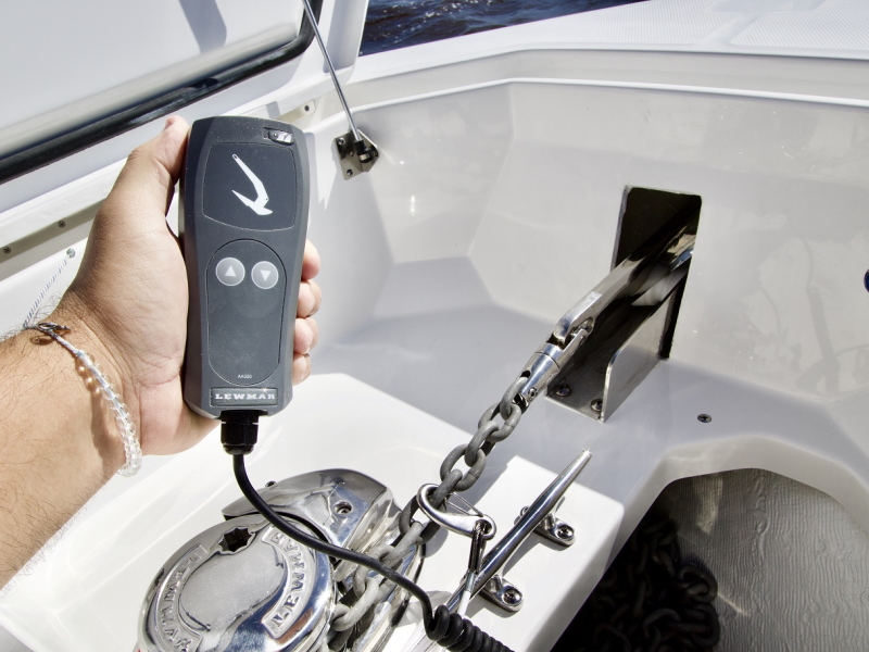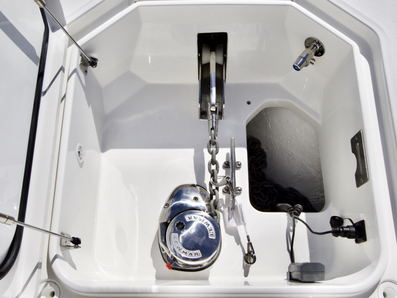 - Through Stem Bow Roller with Anchor Windlass in Forward Deck Anchor Locker, Remote Switch, Chain, Chain Stop, Anchor, and Freshwater Wash Down
