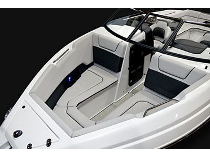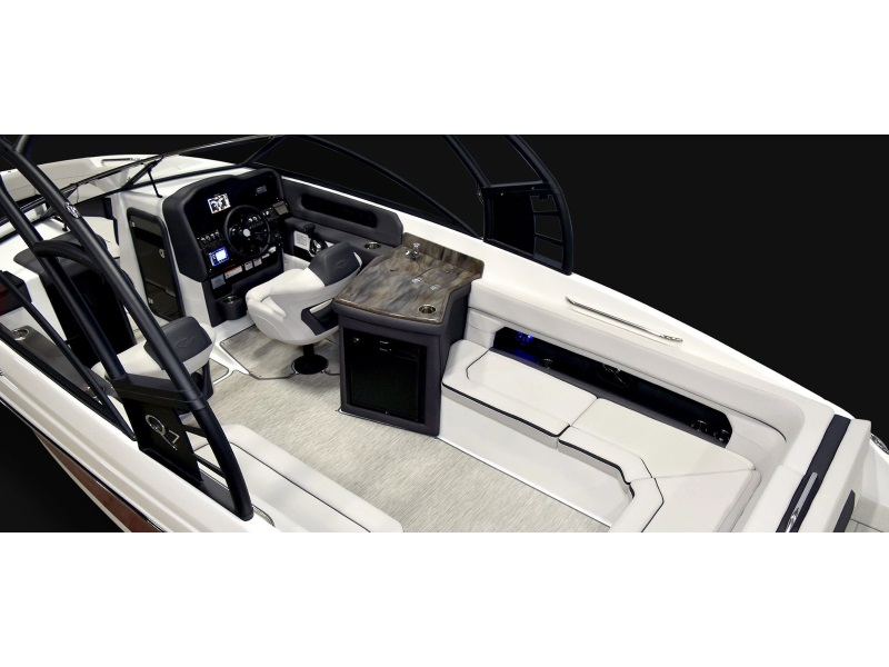 - At 27' 2", this boat offers a roomy interior for entertaining friends and family. You’ll find a refreshment center, side-mount table, head with flush toilet and recessed storage. Add optional shore power for fridge & freezer.
