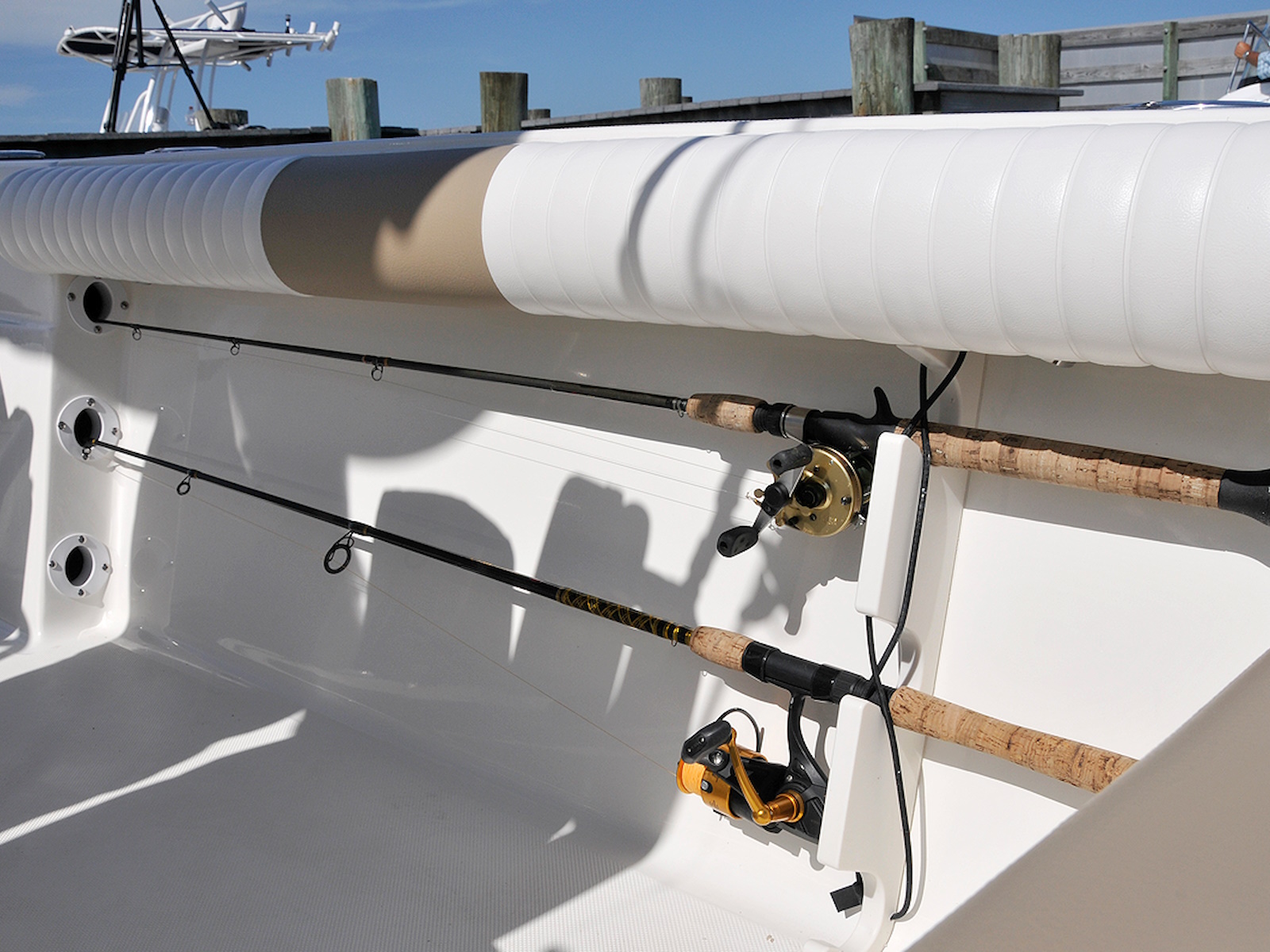 Measuring in at 22′ 5″ with a 102″ beam, this elegant all composite construction 22-foot center console is designed for both serious angling and family fun alike. With higher sides (freeboard) than our bay boats, the LX22 is ready and willing for offshore and inshore cruises. In addition, our 22-footer offers forward-lounge seating, aft bench seating atop a practical deck layout making it feel much larger than center console boats within its class.