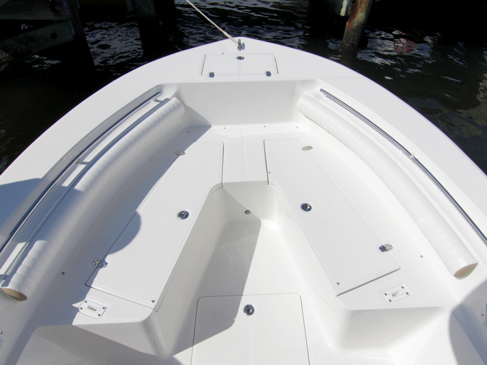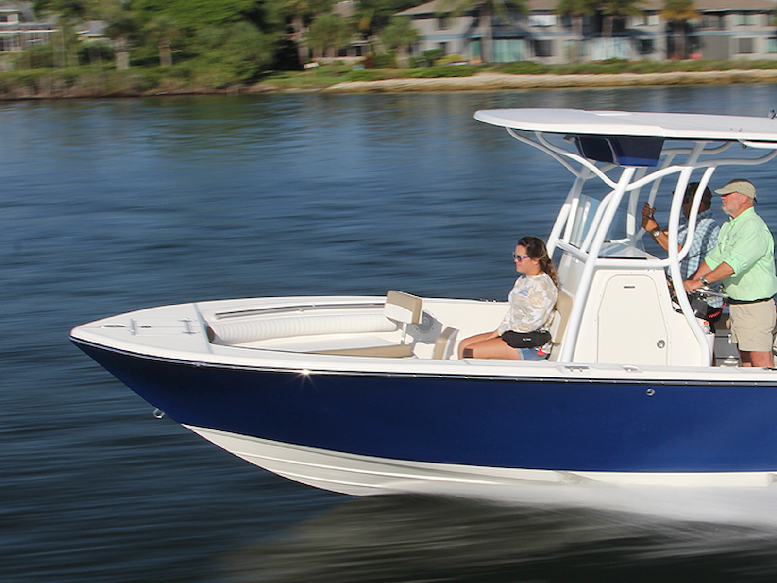 Measuring in at 22′ 5″ with a 102″ beam, this elegant all composite construction 22-foot center console is designed for both serious angling and family fun alike. With higher sides (freeboard) than our bay boats, the LX22 is ready and willing for offshore and inshore cruises. In addition, our 22-footer offers forward-lounge seating, aft bench seating atop a practical deck layout making it feel much larger than center console boats within its class.