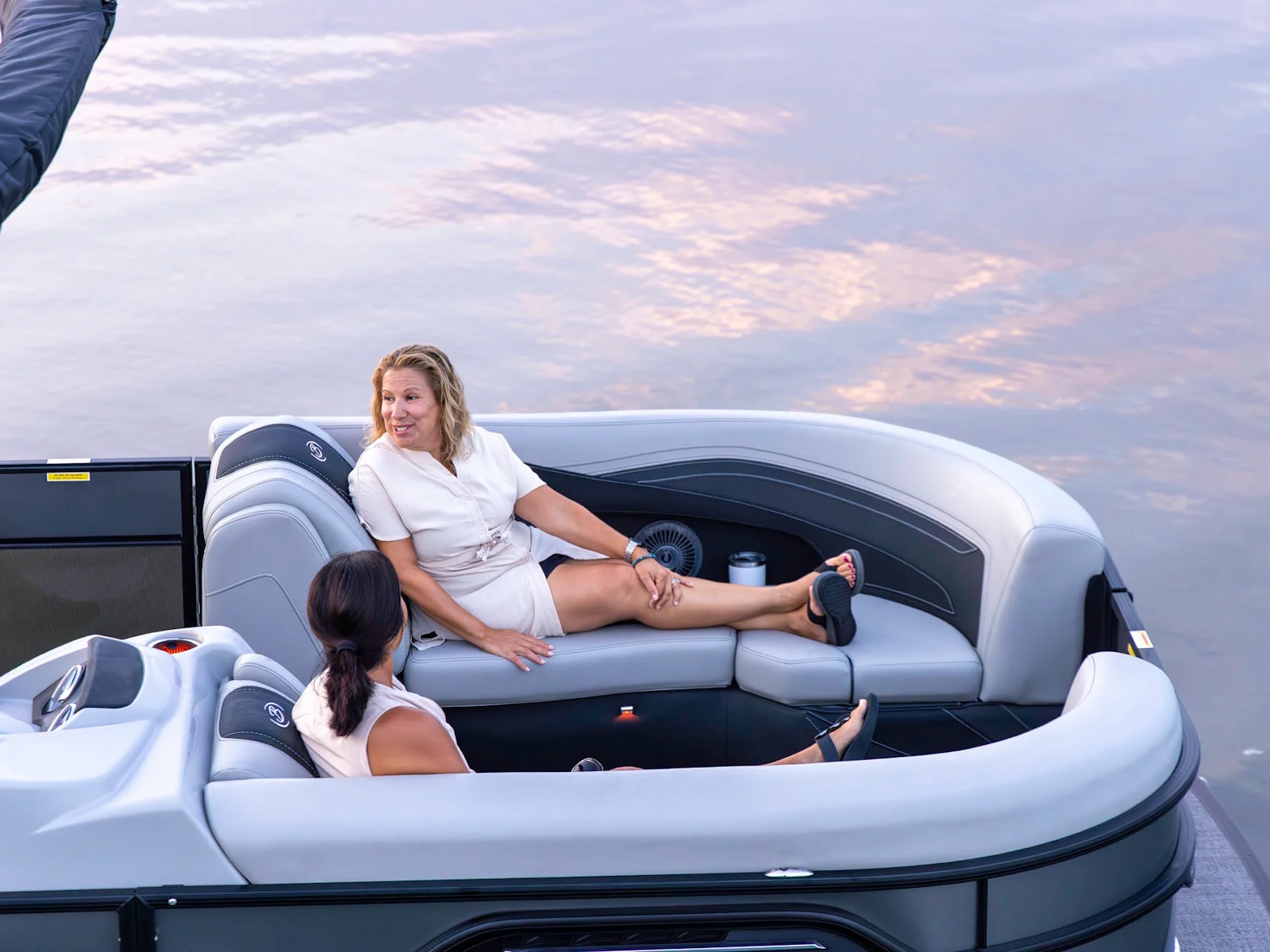 Do you have a large crew that demands lots of seating? The quad-lounge is the layout for those who want to spread out and relax on the ultra-comfy Barletta chaise lounges. The way the furniture wraps around the perimeter of the boat is also great for keeping curious kiddos and pets inside the boat while underway.