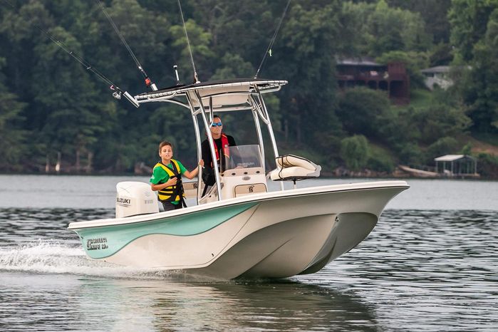This model is equipped with a dependable Suzuki outboard—typically 115–140 HP depending on package—providing plenty of power for cruising and water sports.